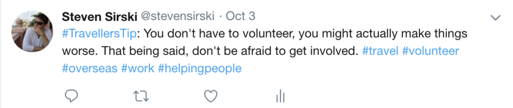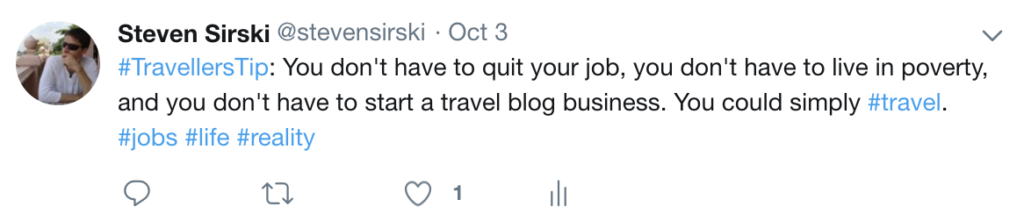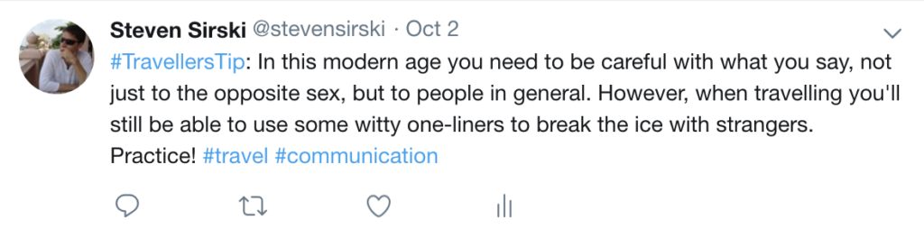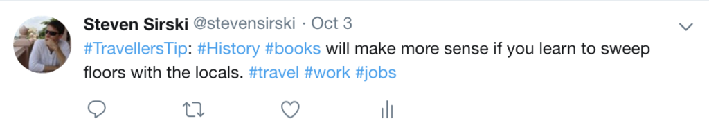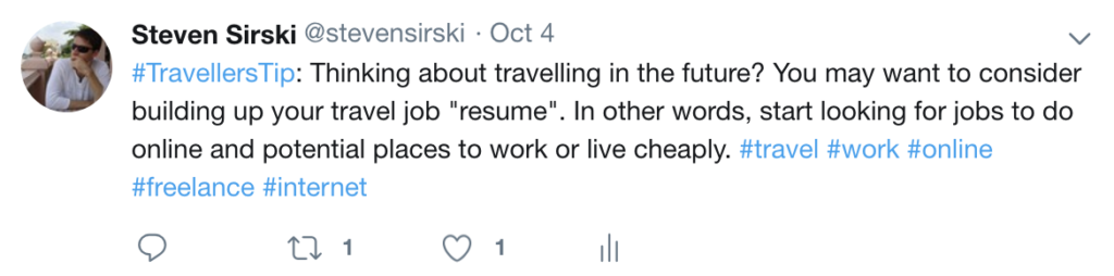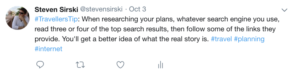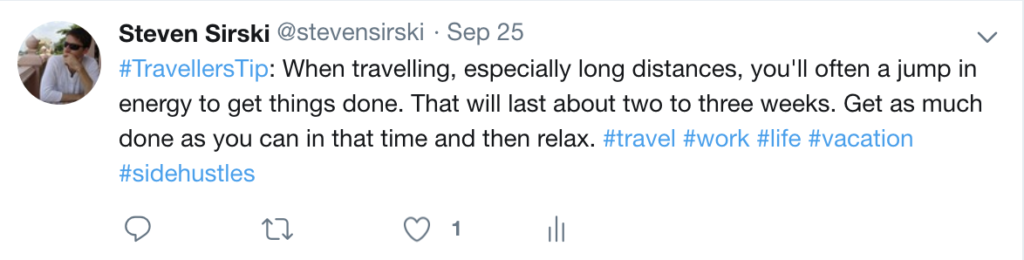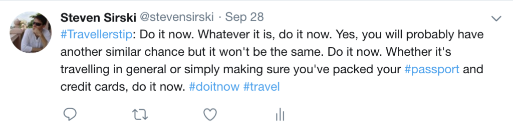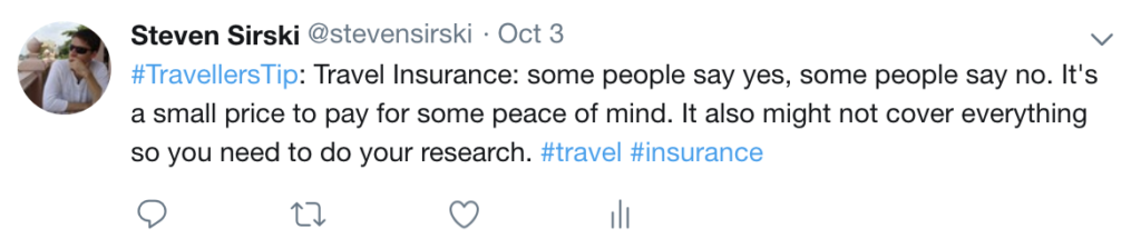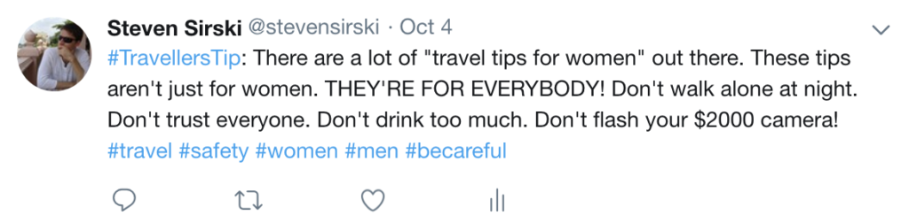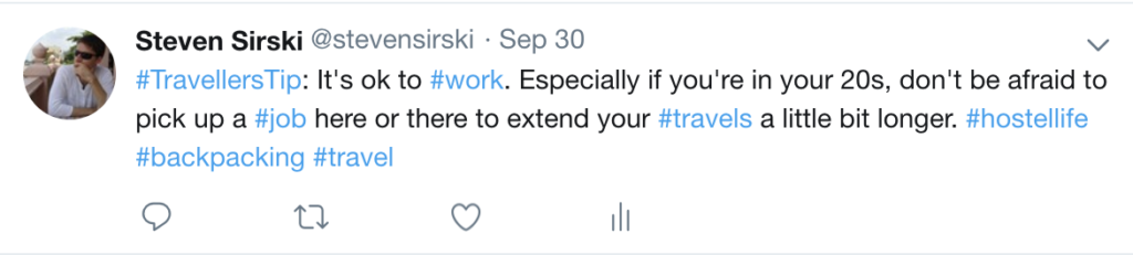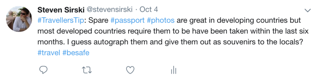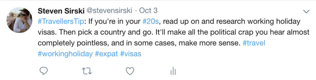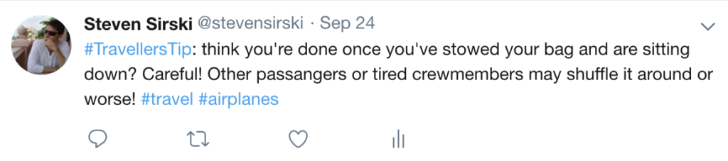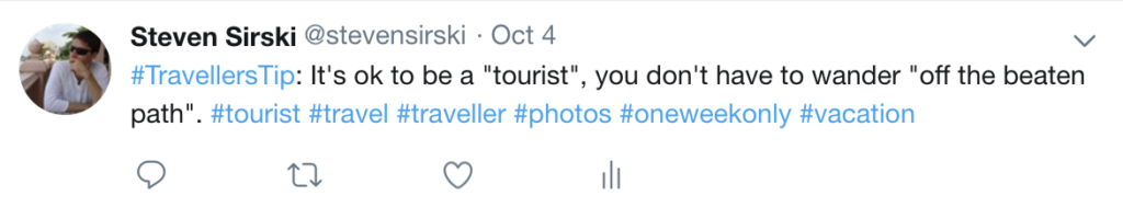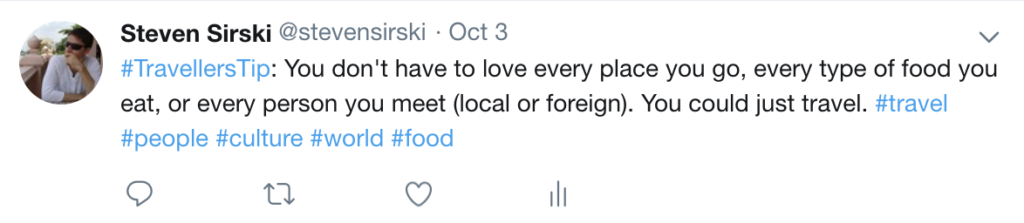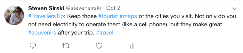 So back a few months ago I posted a series of tweets with the idea that maybe they’d be useful to others who are thinking about travelling. This list isn’t exhaustive but things are some of the things I’ve picked up along the way. Some should probably be explained a little more but I think the majority stand on their own. Further, many of these would probably fit into the “unconventional” column of tips for travelling since some are “travel hacks” instead of some sort of tip. Take them for what they are, some things to keep in mind. Here they are in order of posting: