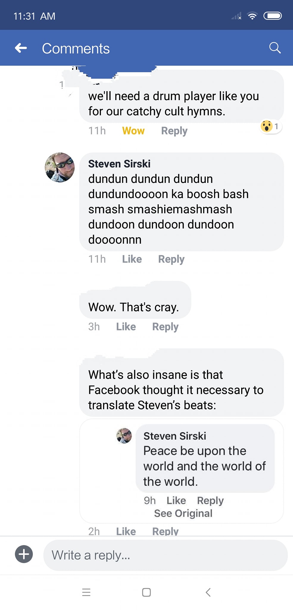 But the subject of drumming did come up in another post, something about cults: