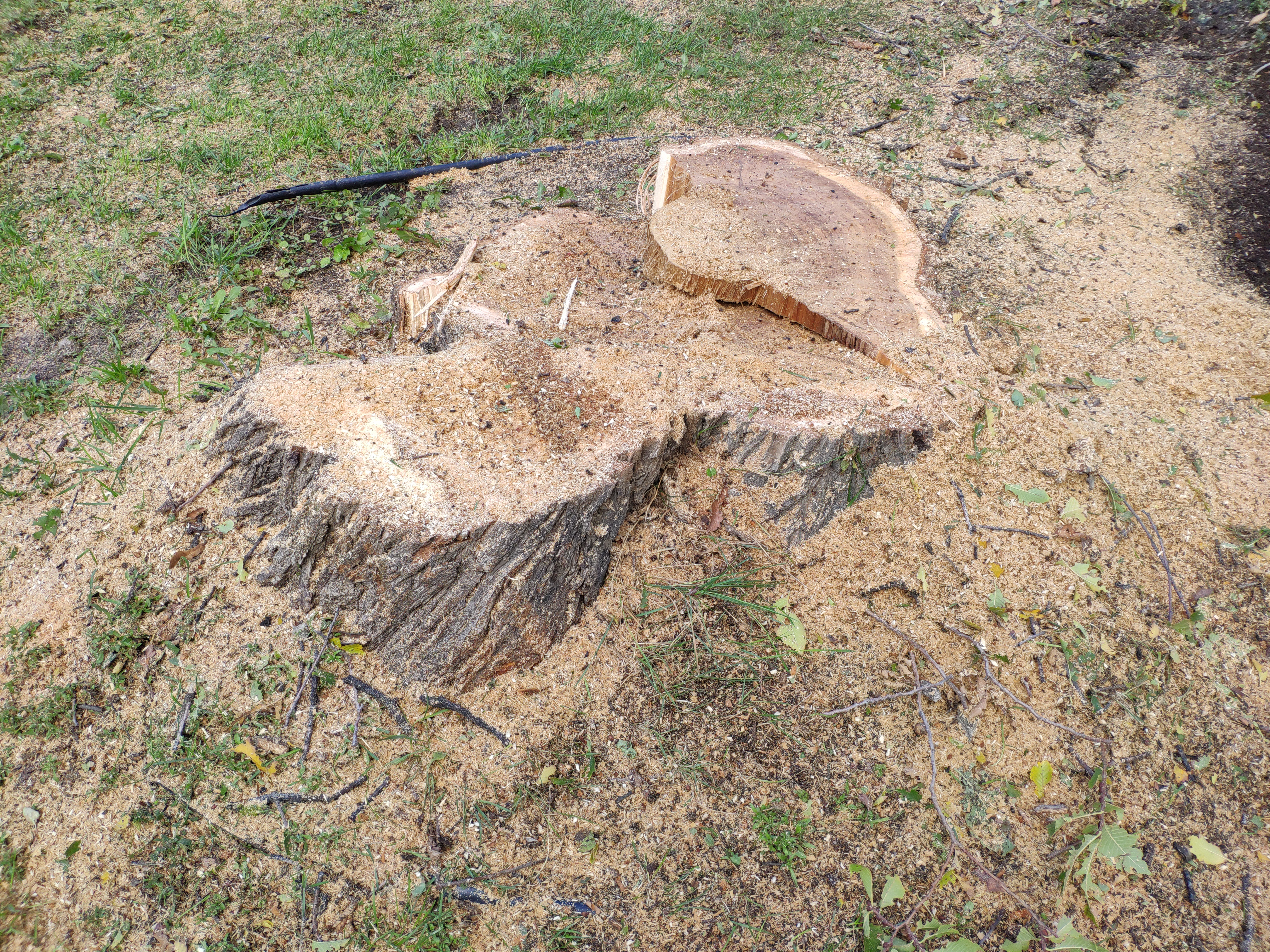 To which a few people responded that Dutch Elm disease, Emerald Ash Borers and Black Knot (some kind of tree fungus) were responsible for all of the tree stumps I had seen. An example of a tree stump: